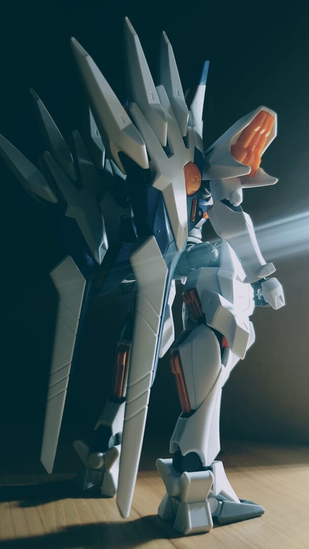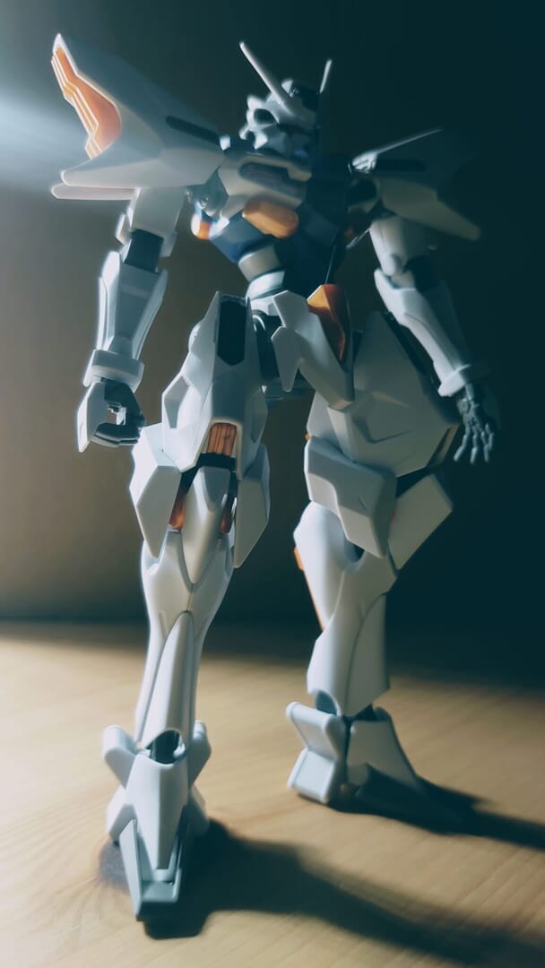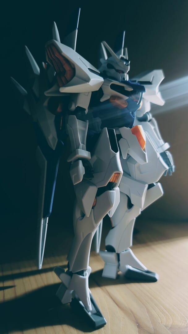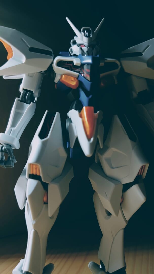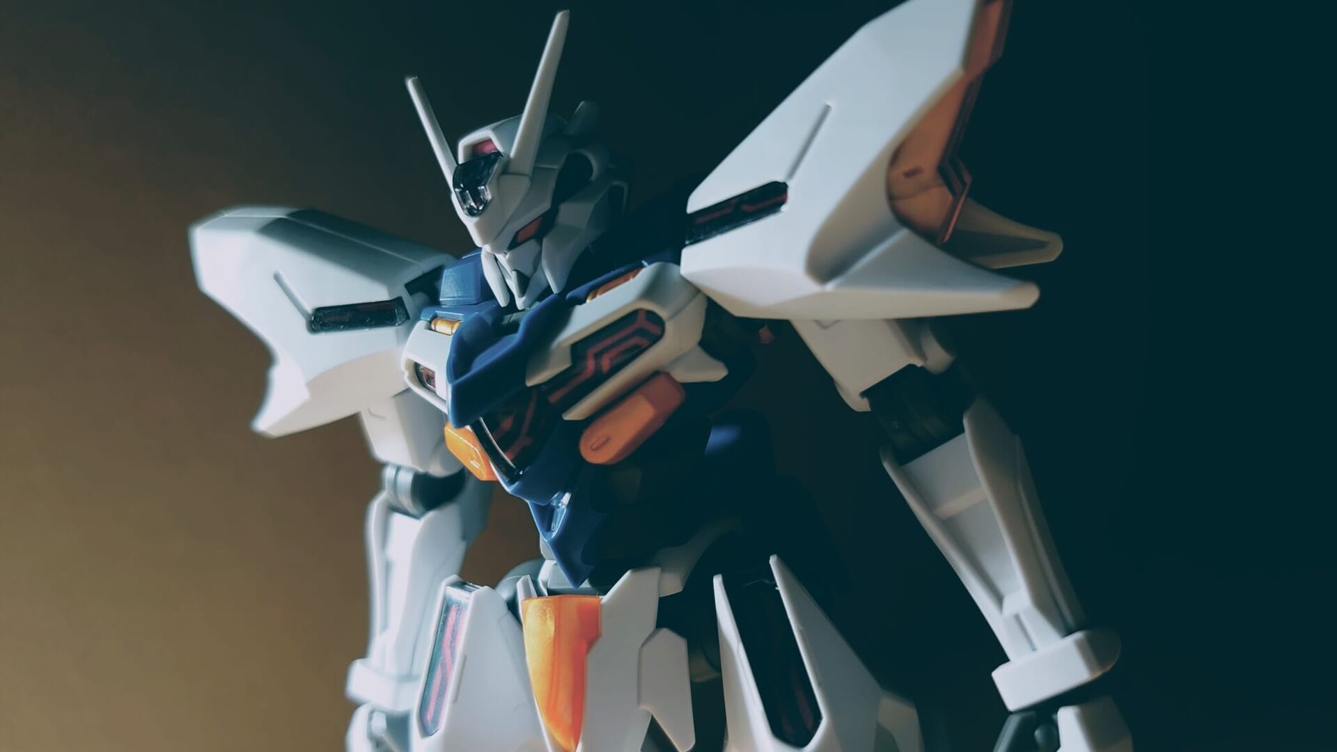 「水星の魔女」の公式外伝コミックに登場した機体がガンプラ化しました!アニメのガンダムシュバルゼッテを彷彿させる、赤い眼が印象的です!胸部の白やオレンジの部分は、パーツ分割により色分けされています!ただ、シェルユニットでは「インモールド成形」が使われておらず、やや寂しいですね…w