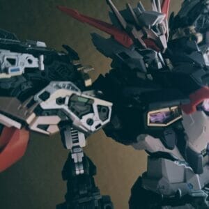 肩が二重装甲にデザインされていてエレガントです!コンセプトは「死神」ですが、白パーツがあると気品が出て良いバランスですねー!白黒の中に「薄紫」を入りすると緩急がついて良いですね!ナタクとは違い、耳ペーツが無くて頭部がシンプルです!理由は、肩がかなりギリギリまで近づく設計だからなのかもしれないですね!