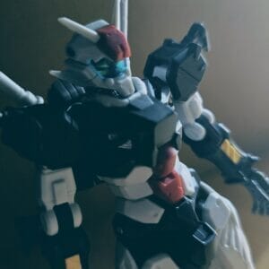 ビームライフルとシールドを装備!暗い色にワンポイントで白色が入っているバランスがオシャレ!シールドだけが完全に黒色なのは重い印象を受けるのですが、本編「ガンダムビルドダイバーズ」のストーリーで明かされていそうですね!観なければ…w ビームライフルは飛行形態でも装備できるよう、専用変形をする設計になっています!