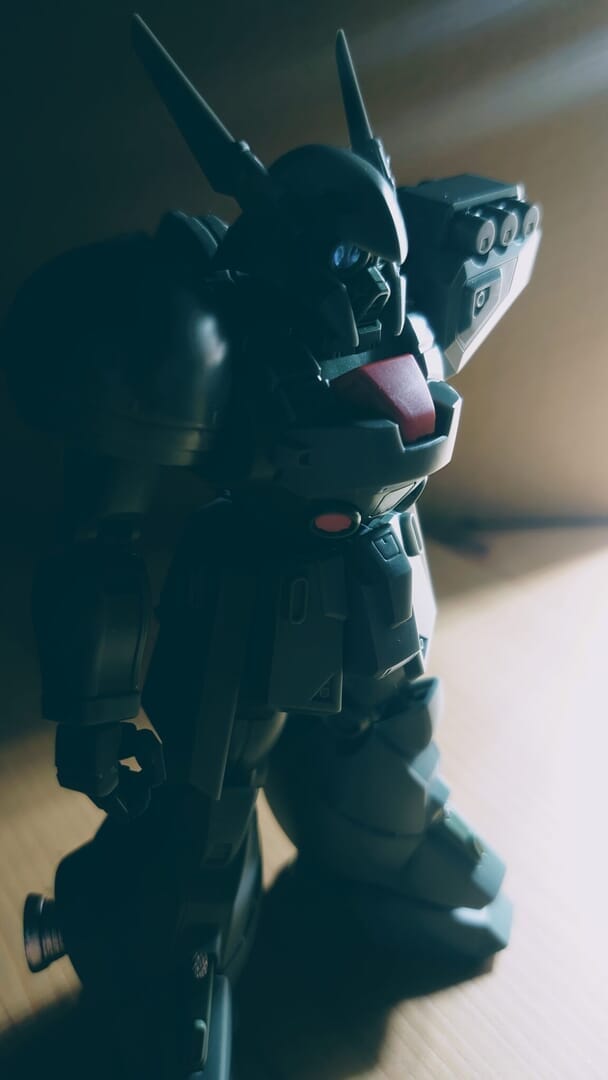もともと映画「人狼 JIN-ROH」に登場したガスマスクが好きだったので、デナン系MSのデザインが大好きでした!今回のキットでも、ゴーグルやマスクなど細かくパーツ分割されており、とてもカッコイイ…!赤色のコックピットハッチは、2パターンから選択できる仕様です!