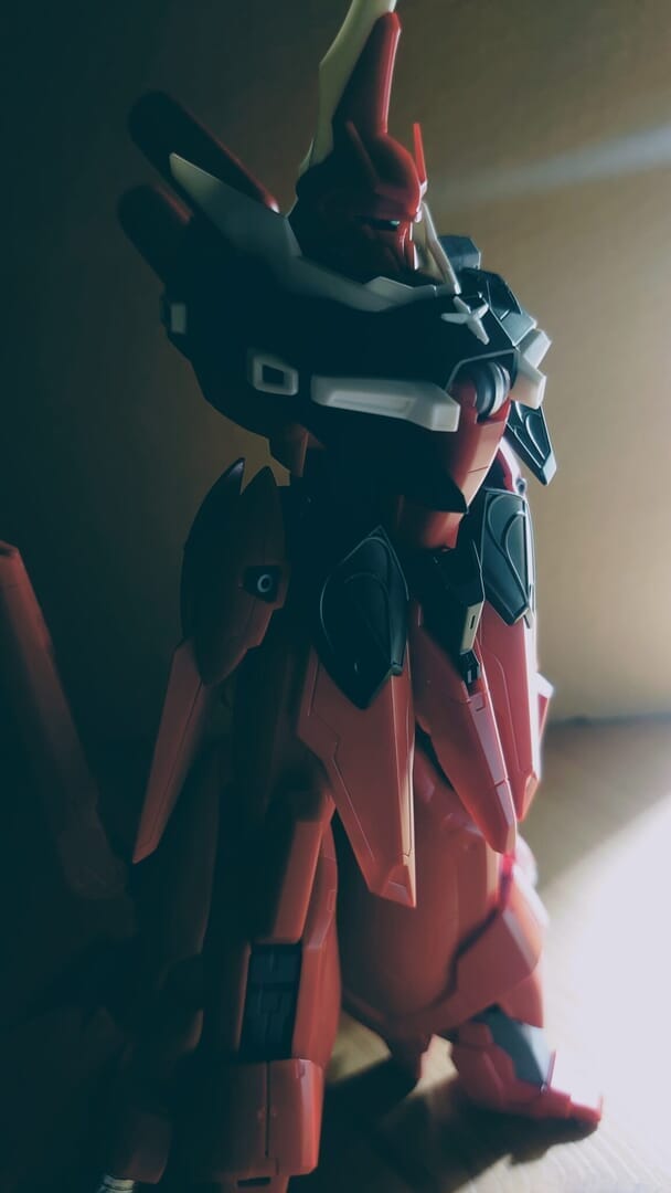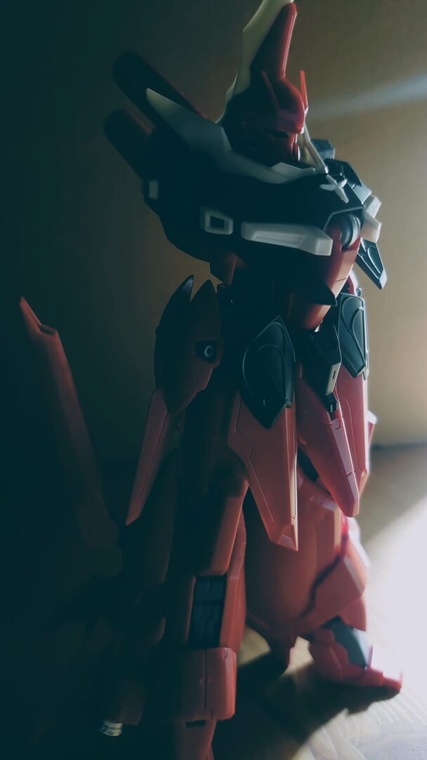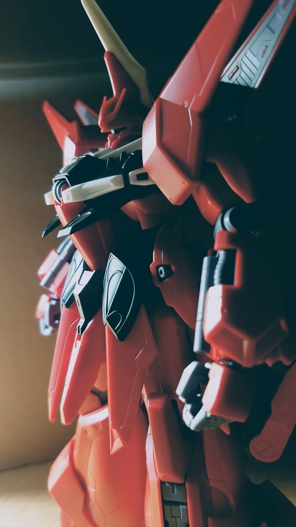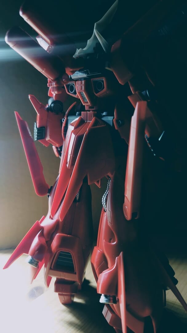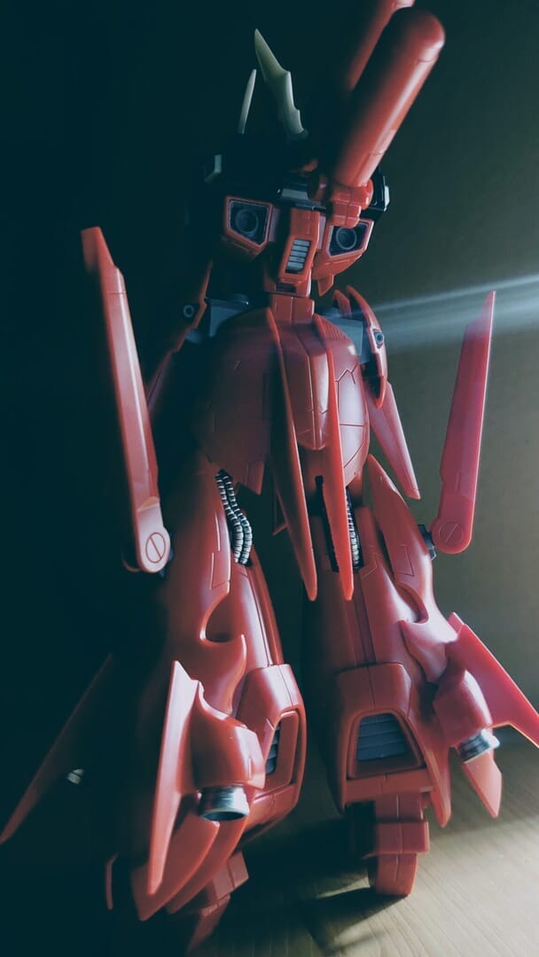 肩部装甲が尖っており、頭部やリバウ専用の脚部外装とのバランスがとれた印象です!塗ってはいませんが、ガンダムUCらしいエングレービングも追加パーツで再現されています!